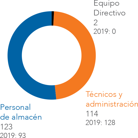 Debido a la situación excepcional vivida este año causada por COVID-19, la organización del trabajo se ha adaptado a dicha situación. La mayoría de los negocios del Grupo han sido considerados dentro de la categoría de Actividades esenciales, lo que ha conllevado que los trabajadores de almacén han seguido desarrollando su actividad presencialmente, habiendo demostrado en todo momento un alto compromiso para asegurar la prestación de servicios durante la pandemia. Los empleados de oficinas, siempre y cuando su actividad lo permitiese, han desarrollado su trabajo a distancia.