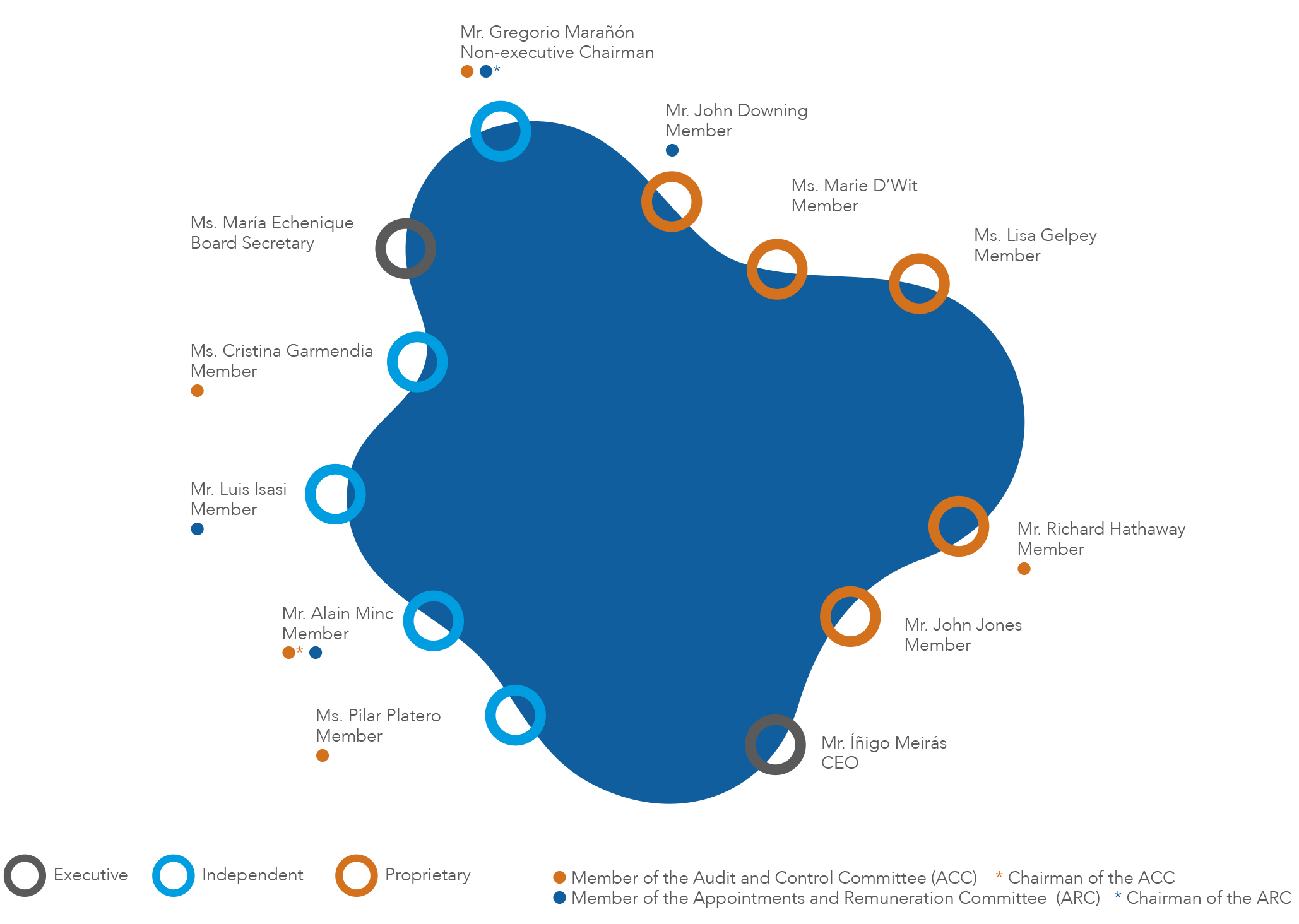 The Board has been particularly attentive to matters of corporate governance over the last year. A number of initiatives based on the recommendations of the CNMV’s Technical Guide 1/2019 on Appointment and Remuneration Committees have been set in motion (succession plan for the Chairman and CEO and Board skills matrix). The Board has also taken steps to respond to the new recommendations set out in the CNMV’s Unified Good Governance Code. The Group’s compliance structure has been made more robust and a Compliance Officer appointed.
