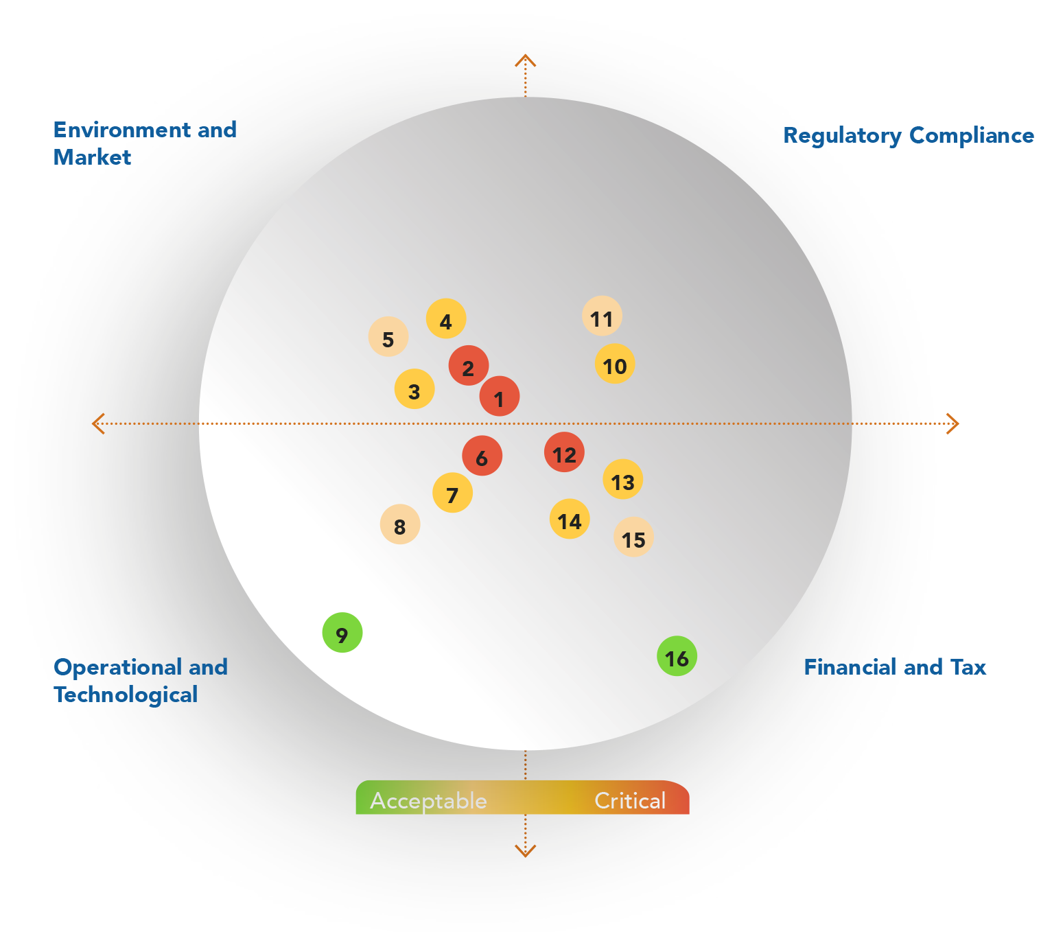 During this stage, the severity of each risk is assessed in order to prioritise those of greatest concern. The criteria used to explore potential impacts on the Group are: regulatory compliance, economic/financial, health and safety, operations, reputation and strategic context.